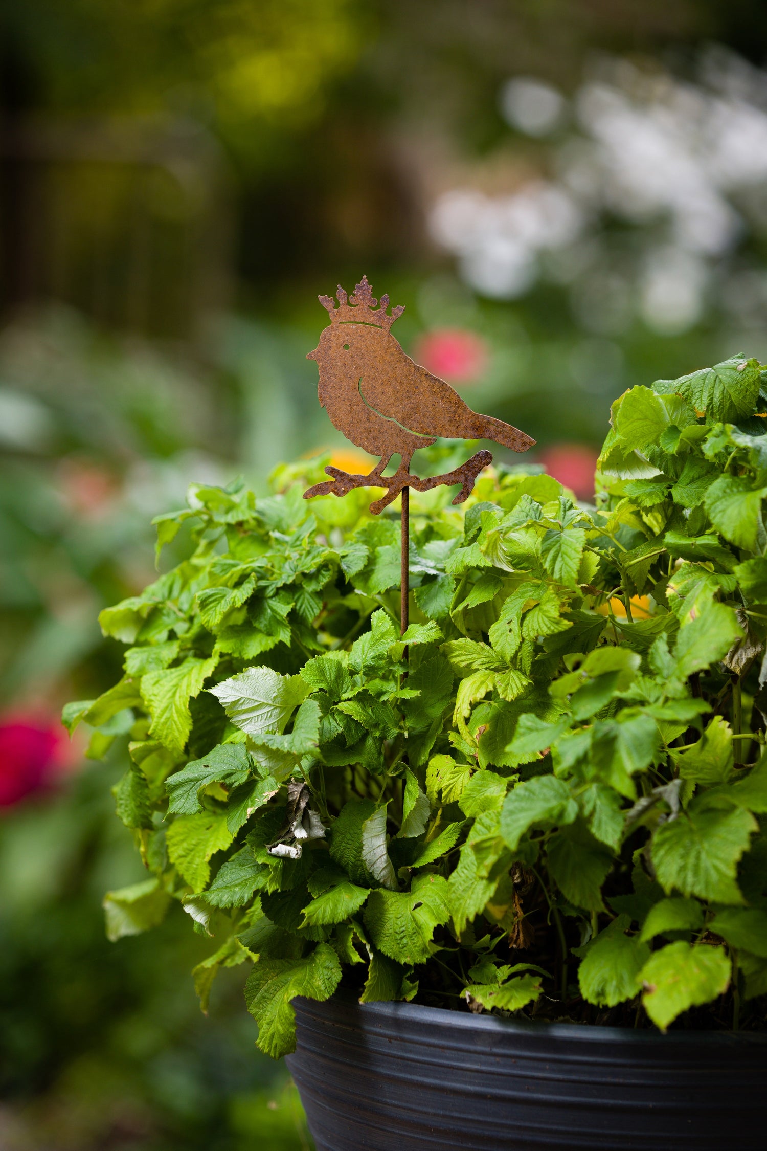 The Chickadee with Crown Pick is made of recycled steel and pre-treated to create our signature rusted texture and natural look. Some chickadees even have feathers containing rust-like hues! This small piece of artwork would be the perfect nature-inspired, yet artsy and fun accent inserted into the flower pot of your favorite plant!