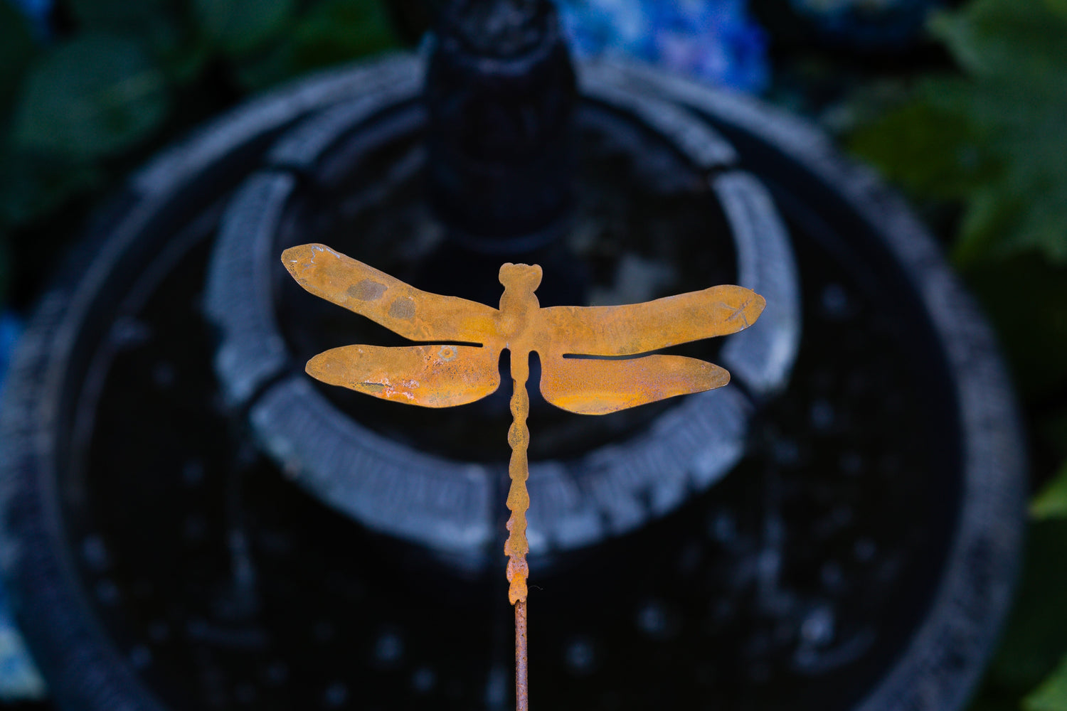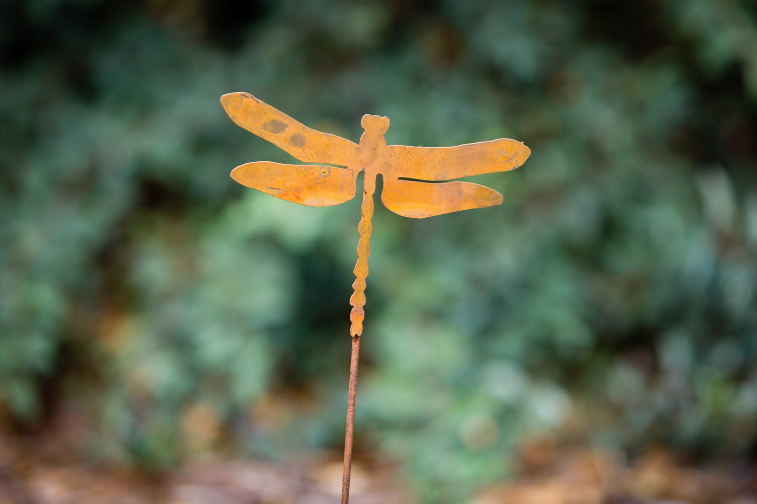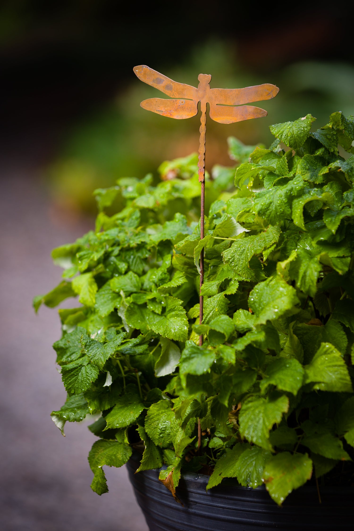 The Dragonfly Pick is made of recycled steel and pre-treated to create our signature rusted texture and natural look. Our products’ iconic rusted finish beautifully complements lush and vibrant greenery, so display this pick in a thriving potted plant or flower bed with soft soil!