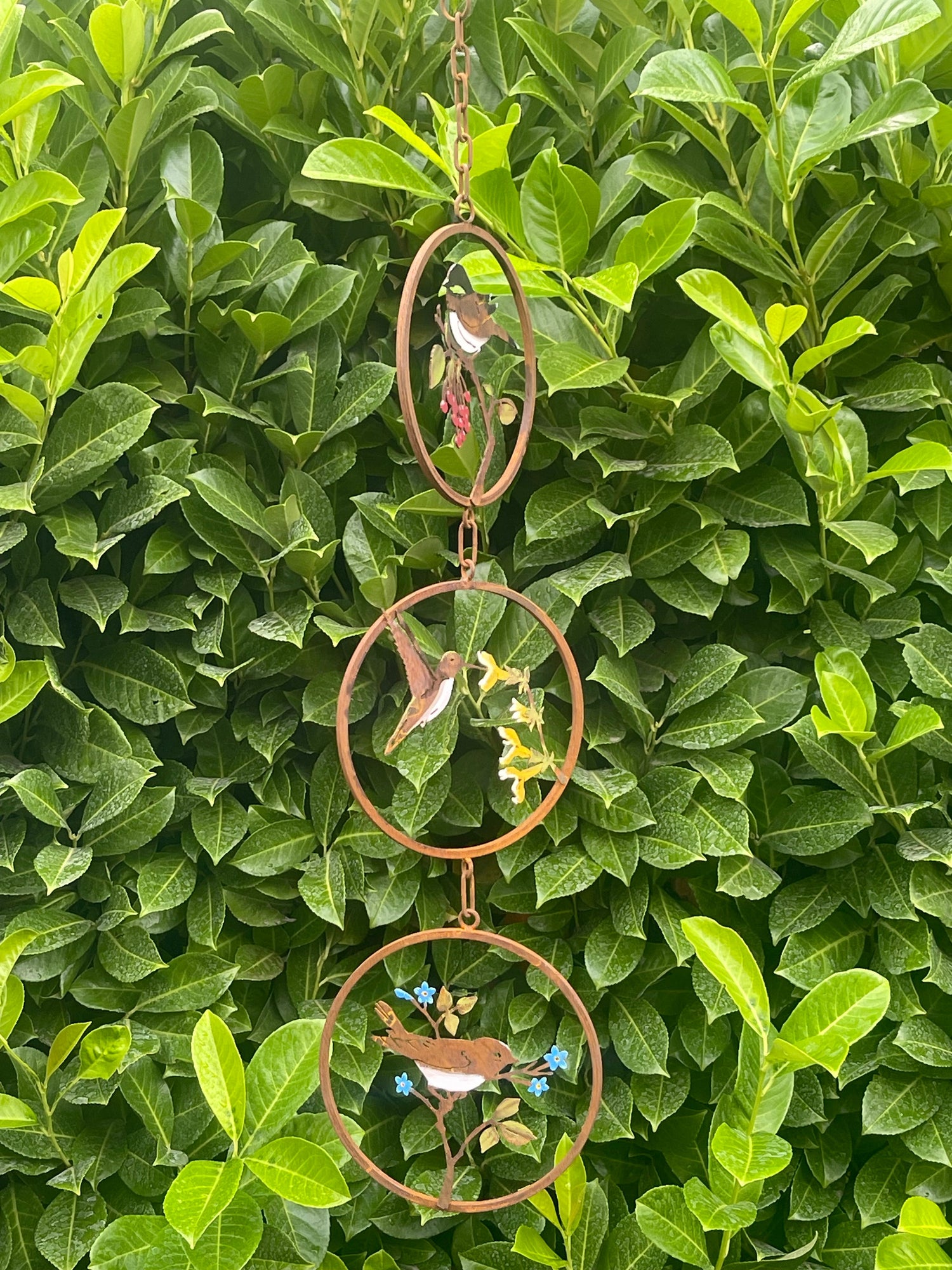 We've taken one of our most popular triple rings and added movement. The Three Little Birds Hand painted Triple ring features three of our most eye catching designs, lovingly painted by our in house artists, suspended inside three separate rings designed to sway in the most gentle of breezes. Enjoy these captivating designs now with the allure of movement! Give your garden a playful touch with our Upright Birds Collapsible Triple Ring. These charming birds add a touch of whimsy to any outdoor space with their upright stance and eye-catching motion. Bring your garden to life with this unique piece of garden art.
