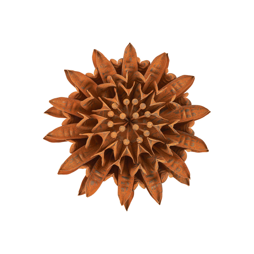 Ophelia is a stunning blend of strength and delicacy. This wall-mounted steel sculpture draws inspiration from the natural world, with an abstract form that hints at the shape of a flower in bloom. The unique patina finish gives Ophelia a rich, multi-toned texture, with earthy shades of brown and rust that catch the light beautifully. Its graceful curves and flowing lines make Ophelia a captivating addition to any room, whether displayed alone or as part of a larger collection. With Ophelia, you bring a touch of nature’s elegance into your home, but with an artistic, modern twist.