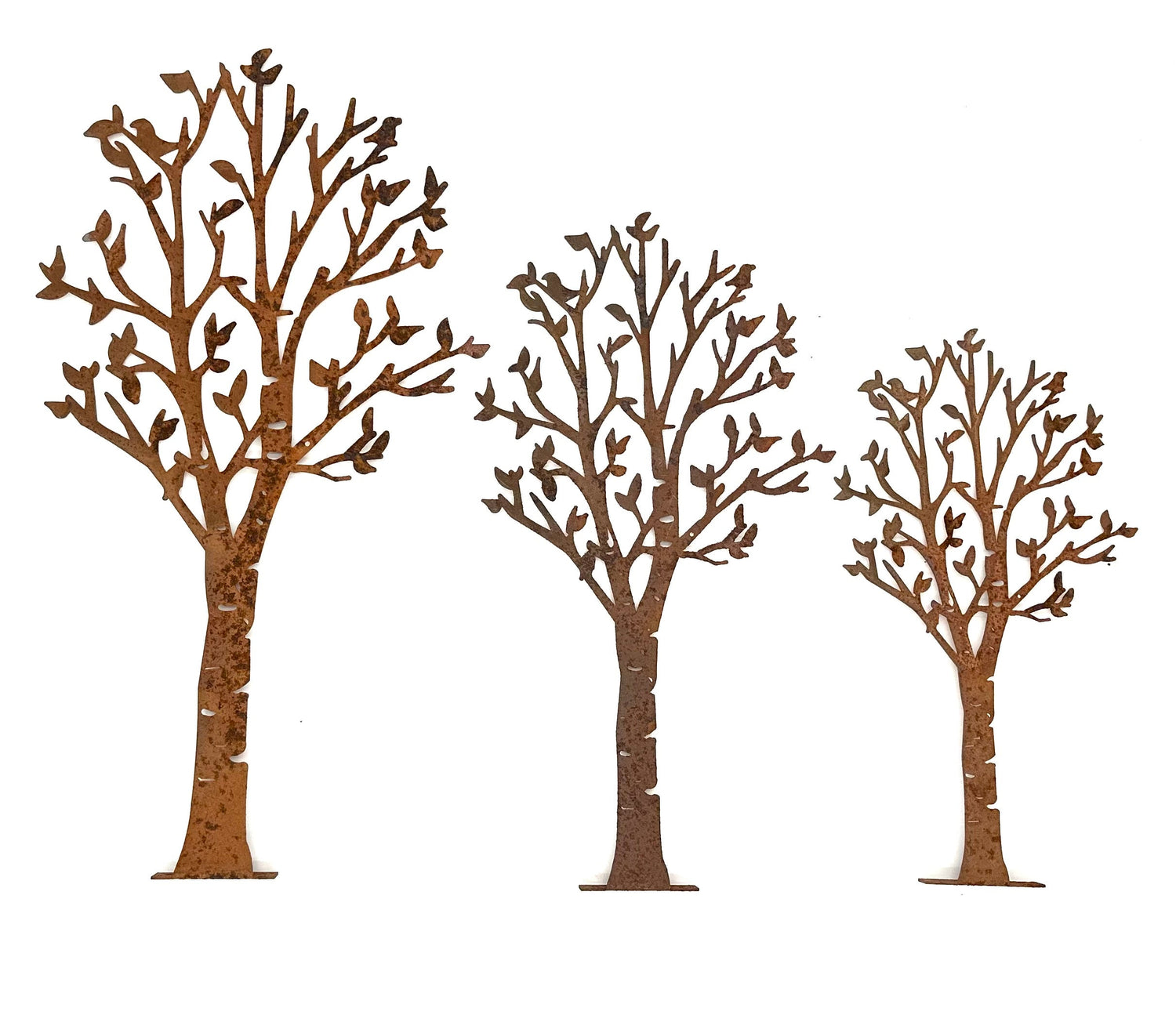 Our Birch Trees are a gorgeous and artistically designed piece for any nature-inspired decor theme! Our metal silhouette features cutouts along the trunk that highlight the unique texture of the bark on this hardwood tree. It also accentuates the leaf-filled branches, with a few little songbirds hidden among the leaves!