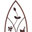 Our metal garden art inserts easily into soft ground when using two hands for support. Be mindful of rocks and roots that may catch the metal stake, and adjust the depth as needed.