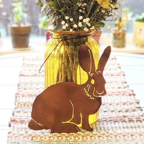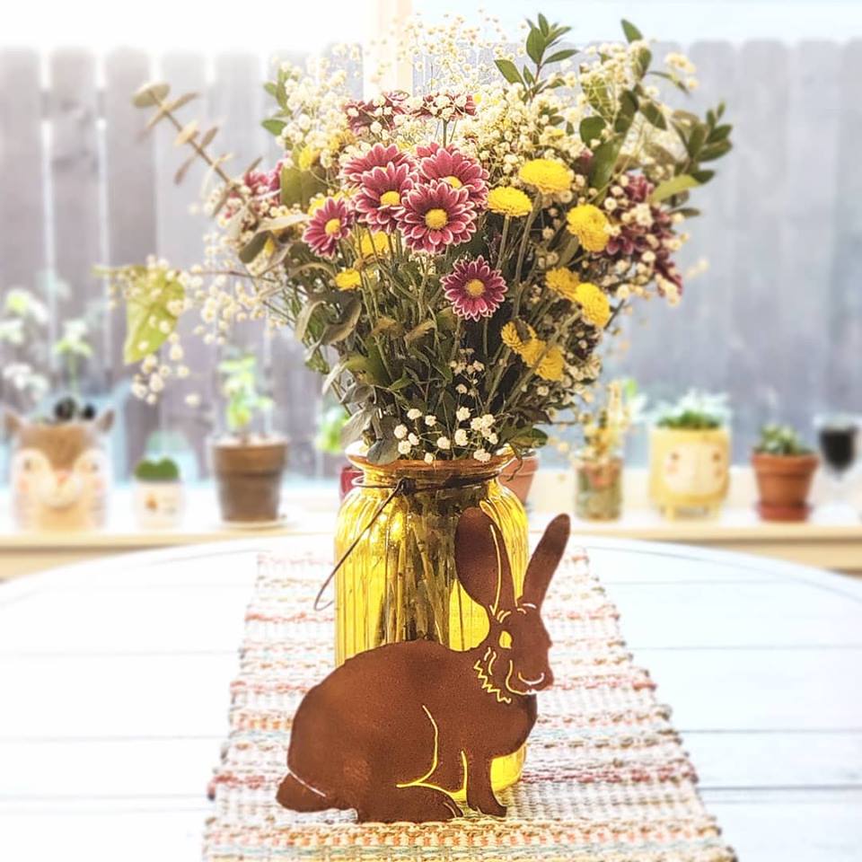 Hop into fun with the Mama Bunny metal art mount. Perfect for adding a playful touch to any space, this mama bunny is both quirky and functional. Mount her on any wood surface for a unique conversation starter or give her as a gift to your favorite bunny-lover!