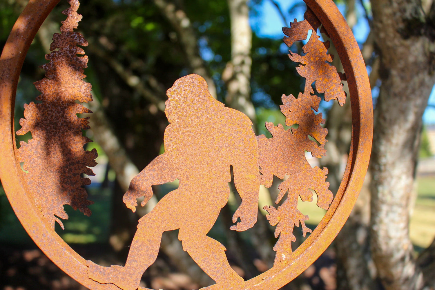 The Bigfoot Ring is a captivating piece of metal garden yard art that adds a touch of mystery and intrigue to any outdoor space.