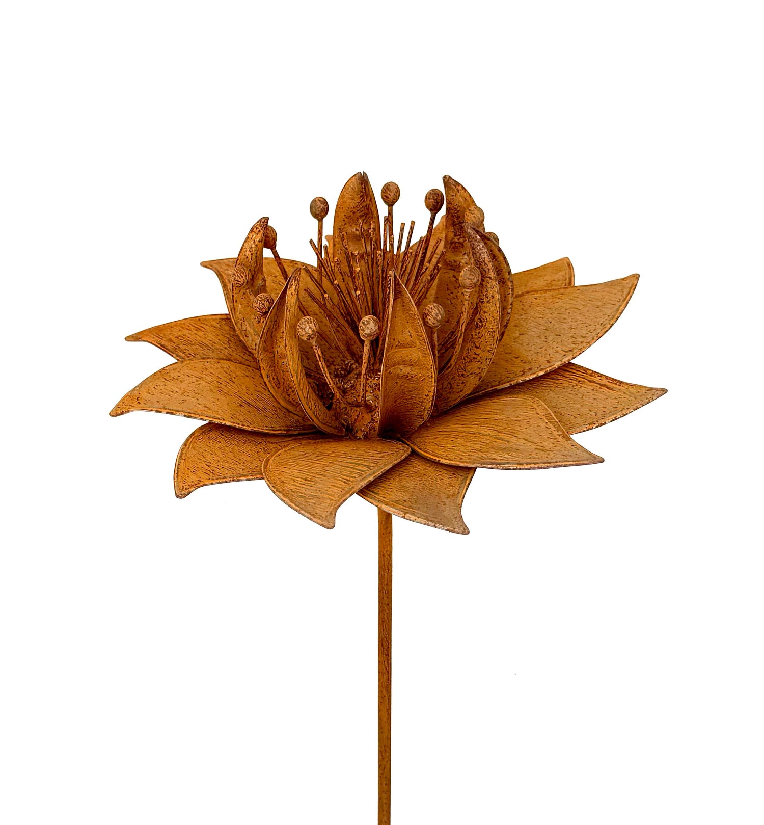 Pyra offers a refined balance of elegance and industrial charm. This steel sculpture, with its unique rusty patina, mirrors the delicate structure of a flower but carries an abstract touch that adds depth and intrigue. The patina finish gives Pyra an organic feel, with varying hues and textures that bring warmth to any room. This piece is perfect for those who appreciate understated beauty and artistic interpretations of nature. The subtle curvature and intricate details of Pyra make it a timeless addition to any wall, adding character and sophistication.