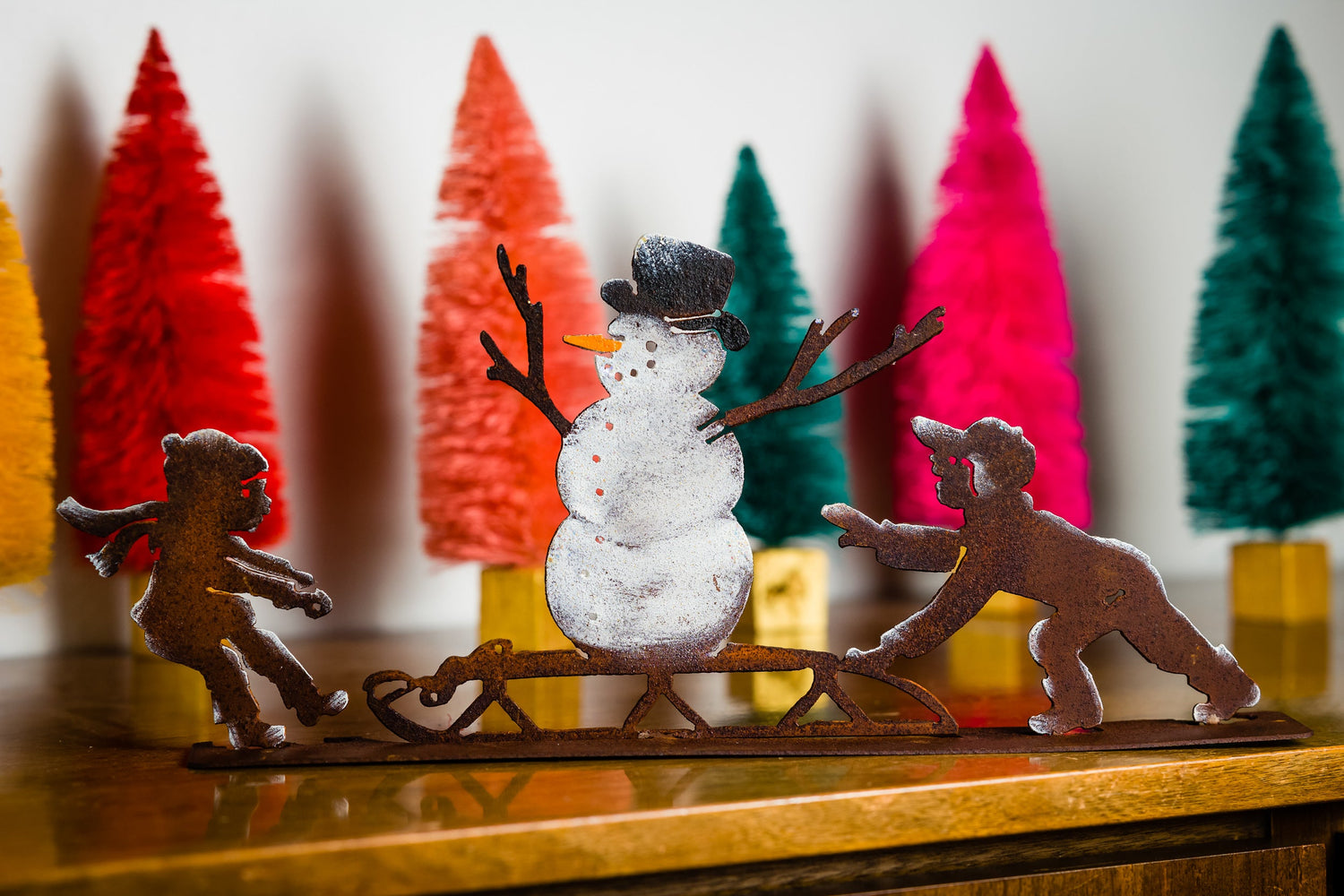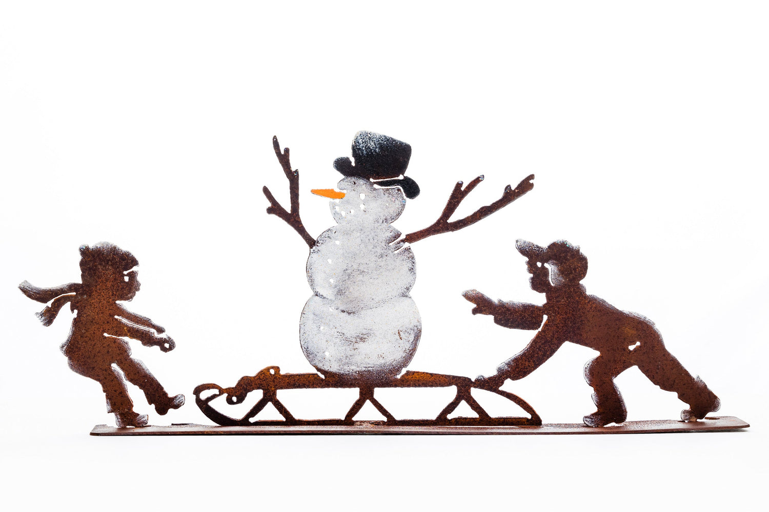 The Snowman with Kids Tab is made of recycled steel and pre-treated to create our signature rusted texture and natural look and hand-painted by our artists.