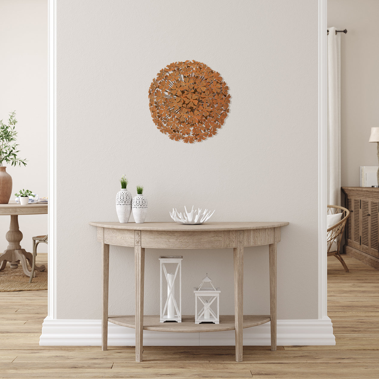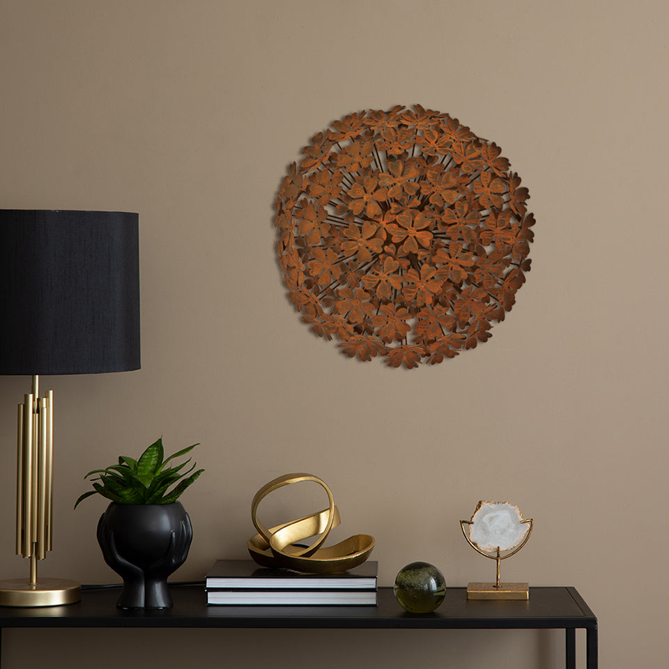Grand Fortunia is an awe-inspiring sculpture that elevates floral-inspired design to new heights. Crafted from steel and finished with a rich, rusty patina, this wall-mounted piece combines strength and beauty in a captivating way. Its abstract form suggests the curves of a flower, but with a modern, artistic edge that keeps it unique. The patina finish adds depth and warmth, with earthy tones that shift and change with the light. Grand Fortunia is a standout piece that commands attention, making it the perfect addition to any space in need of a bold, artistic focal point.