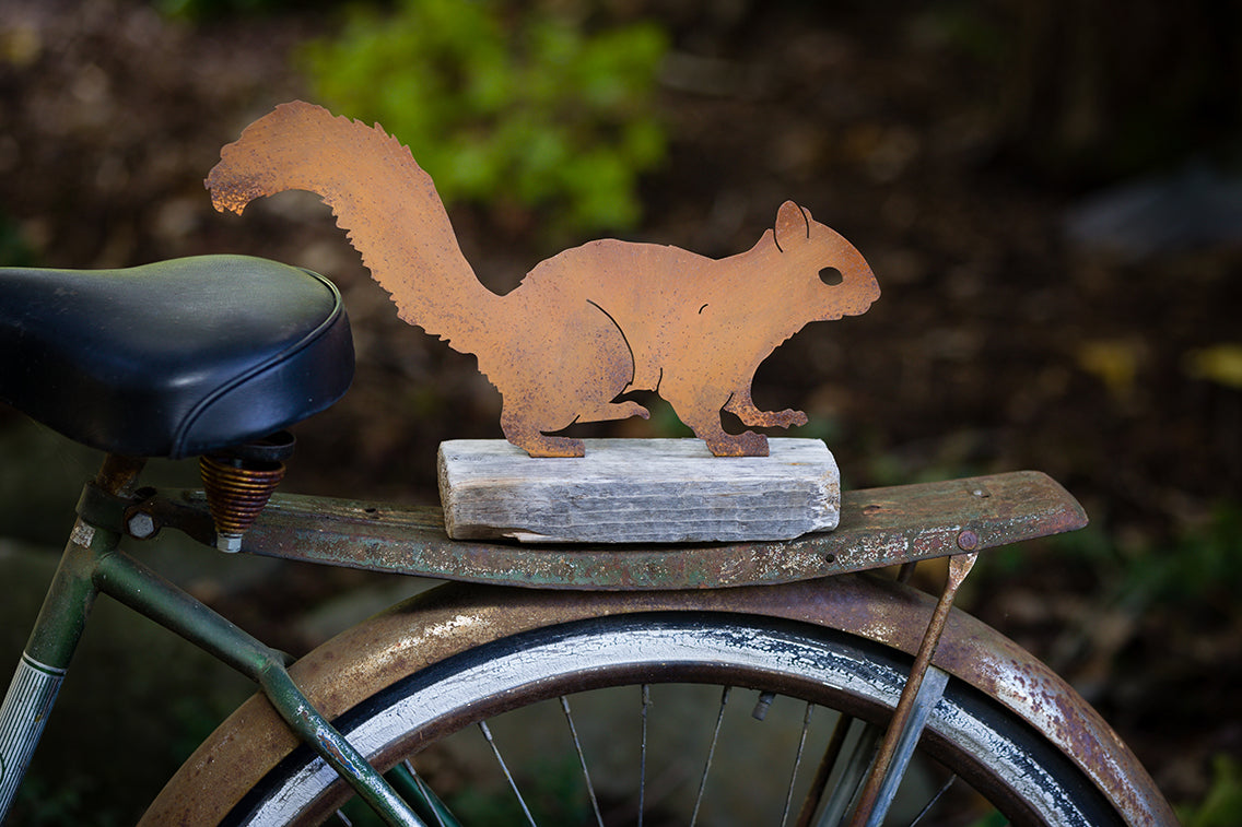 The Alert Squirrel is made of recycled steel and pre-treated to create our signature rusted texture and natural look that even reflects some of their natural brown color. Add a little humor to your outdoor space by attaching this piece of metal garden art to your bird feeder’s post! It also looks great attached to logs, garden gates, or even your front porch railing.