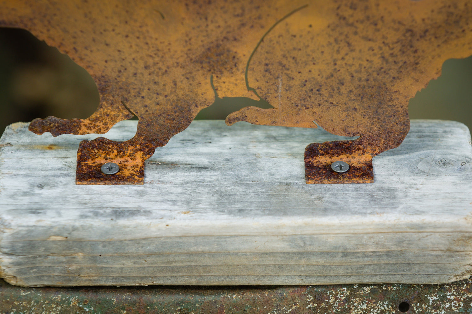 Our metal garden art is easy to mount with a 90° angled tab and pre-drilled screw holes added to each piece. Mount your product to a window, tree branch, pergola, fence, trellis, garden gate, or an old log in the backyard. The possibilities are endless! Many of our designs are also available in a stake version that can easily be inserted into soft ground.