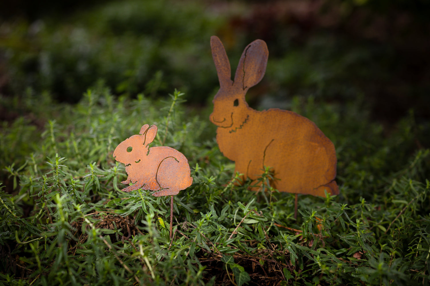 The Baby Bunny Stake is made of recycled steel and pre-treated to create our signature rusted texture and natural look. It would be the perfect springtime accent for a garden full of blooming flowers!