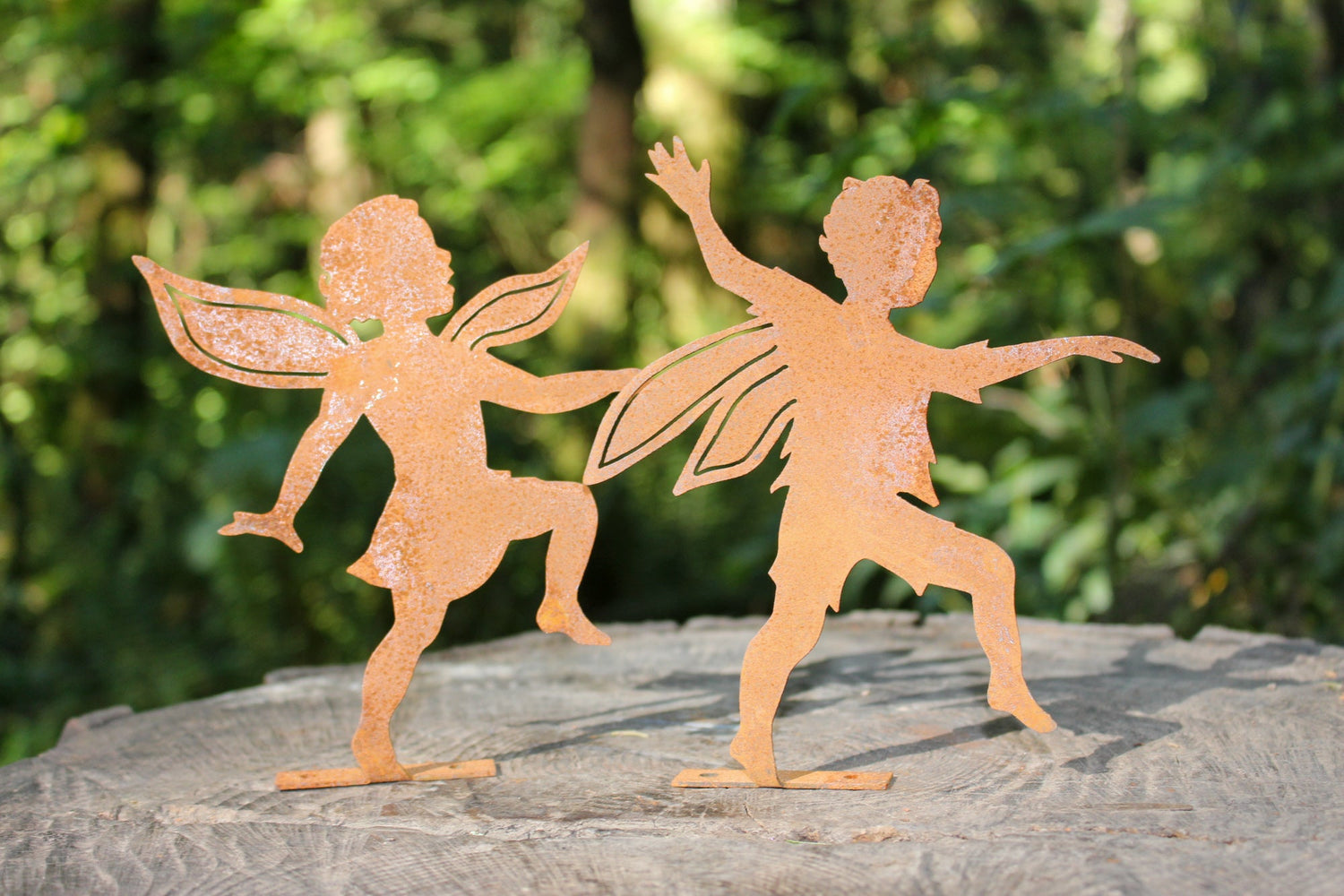 Skipping Boy Fairy is made of recycled steel and pre-treated to create our signature rusted texture and natural look. It would be the perfect accent along the border of a flower garden, mounted to a windowsill, or even displayed as an accent in a children’s bedroom!