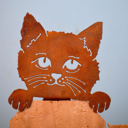 Cats are playful and lovable creatures, and they’re a wonderful addition to your nature-inspired decor! Watching a playful cat is so endearing, where it’s hunting and pouncing or relaxing in the grass. Our Cat Face is perfect to pair with other Rusty Birds garden art pieces!