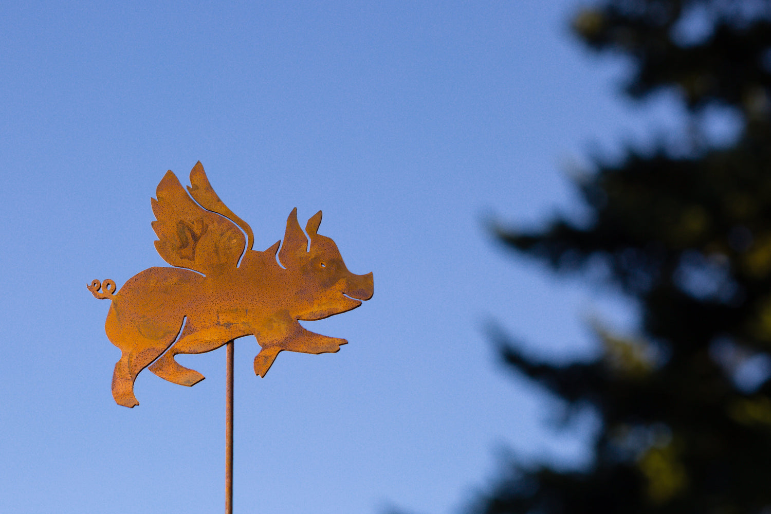 Our Flying Pig Pick is a humorous and eclectic piece of garden decor for your home! It features a smiling pig outline with cutout wings and ears that have a three-dimensional look. It’s complete with an adorable curlicue tail!