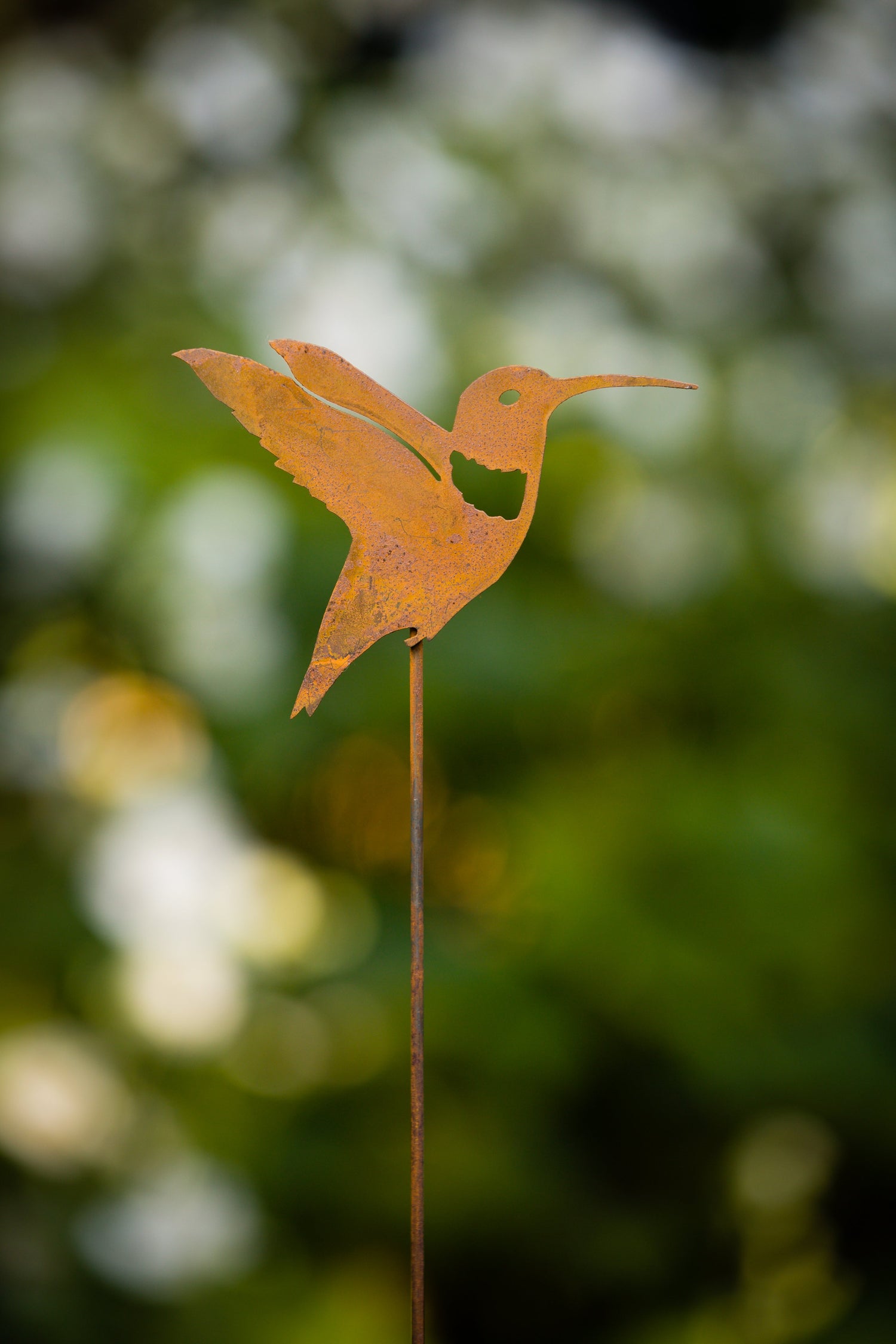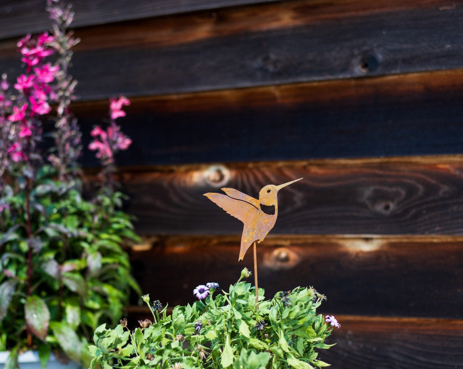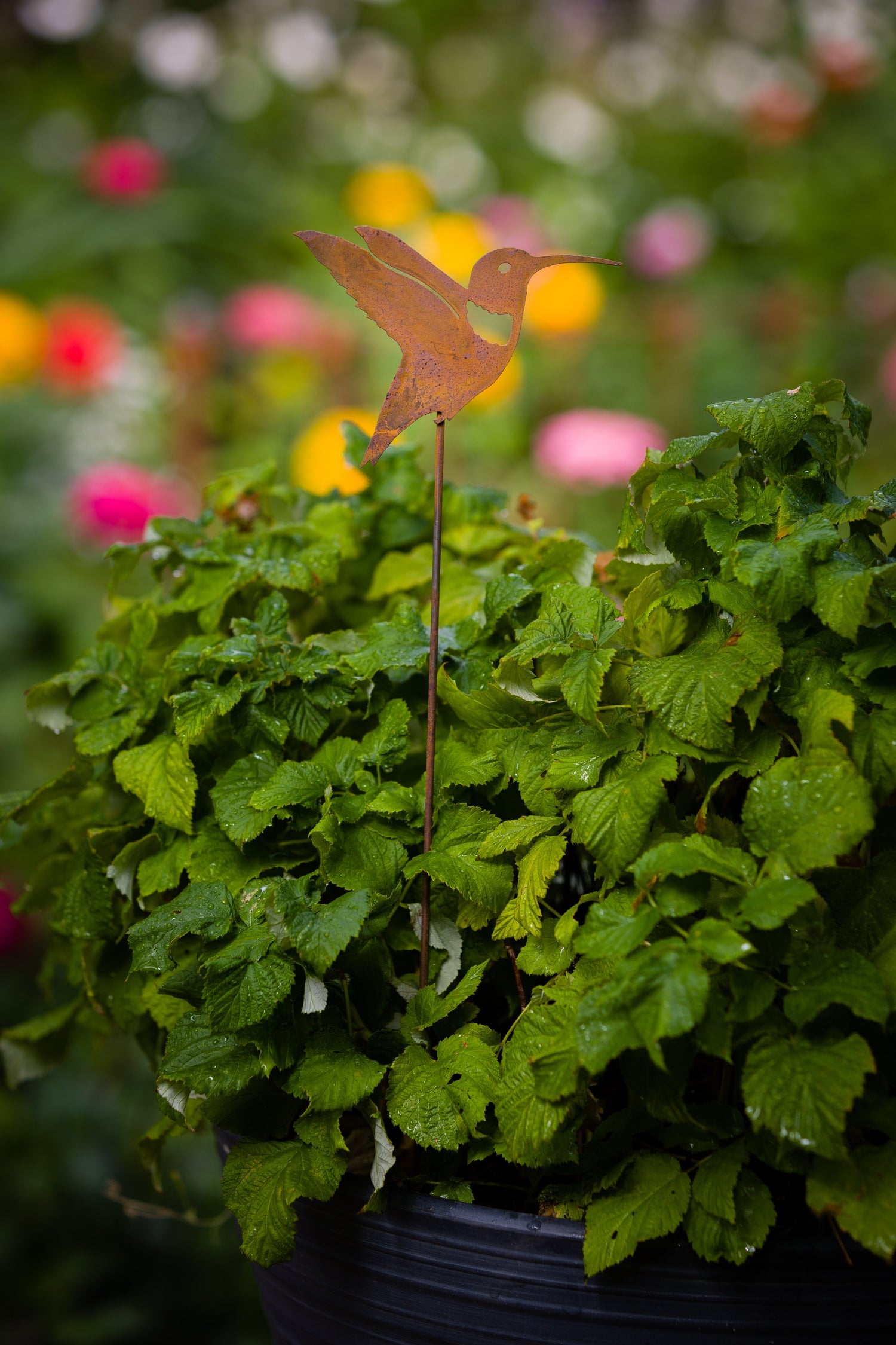 The Hummingbird Pick is made of recycled steel and pre-treated to create our signature rusted texture and natural look. It would be the perfect accent in a flower pot, and the rusted finish will pairs beautifully with vibrant greenery and floral blooms.