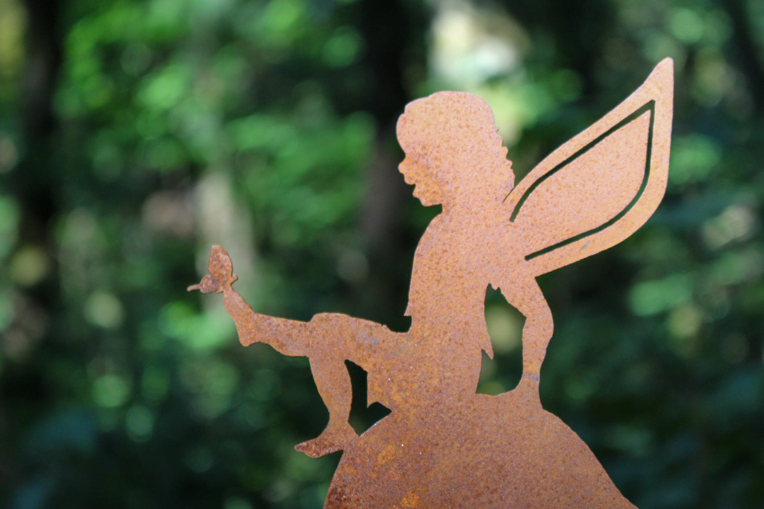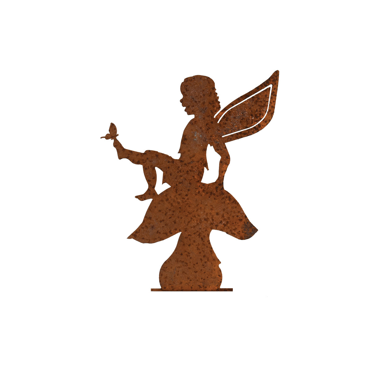 The Fairy on Mushroom is an adorably detailed and life-like piece of metal artwork that will bring a little bit of nature, and a little bit of magic, to your garden! This detailed silhouette highlights the side profile of the fairy’s face, the adorable tiny butterfly silhouette, and the three-dimensional fairy wings. It also highlights the whimsical mushroom silhouette upon which the fairy sits.