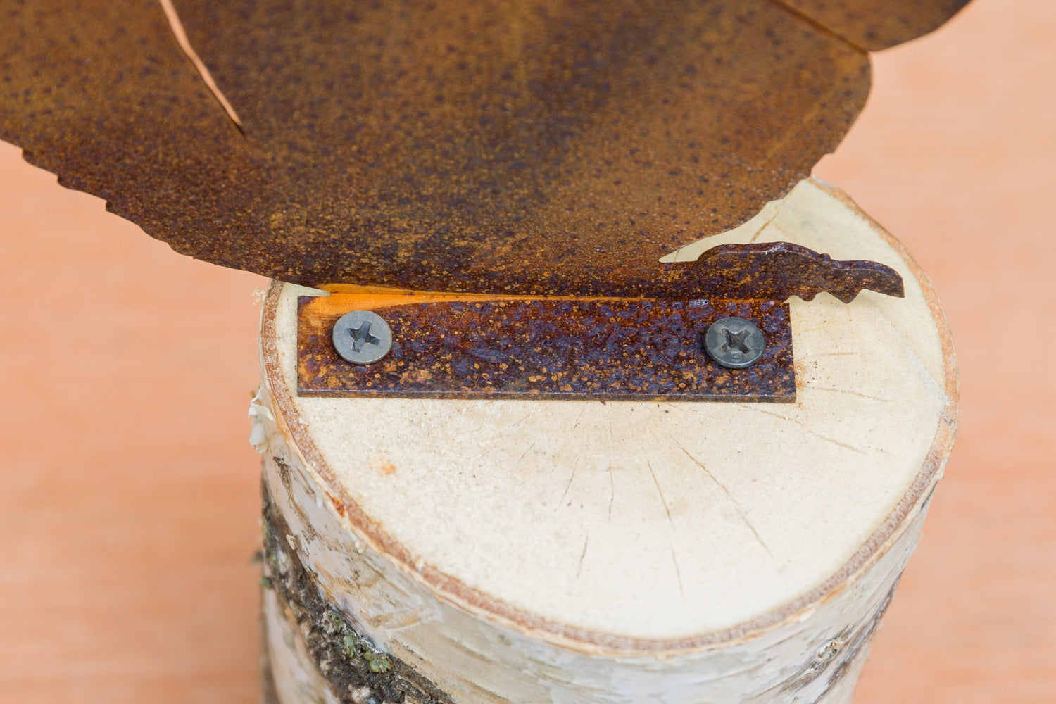 Our metal garden art is easy to mount with a 90° angled tab and pre-drilled screw holes added to each piece. Mount your product to a window, tree branch, pergola, fence, trellis, garden gate, or an old log in the backyard. The possibilities are endless! Many of our designs are also available in a stake version that can easily be inserted into soft ground.
