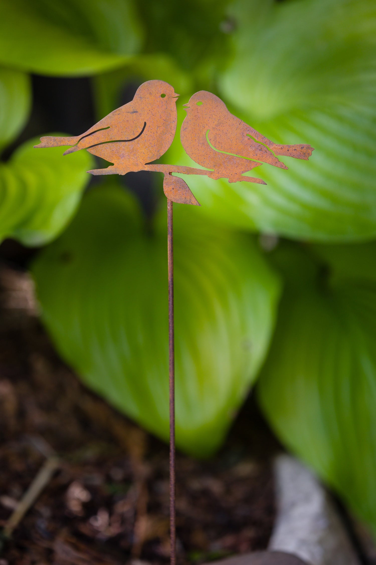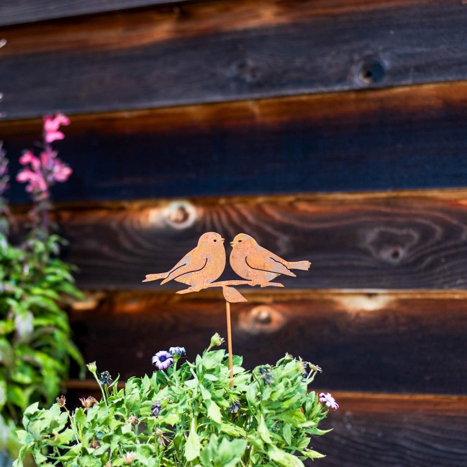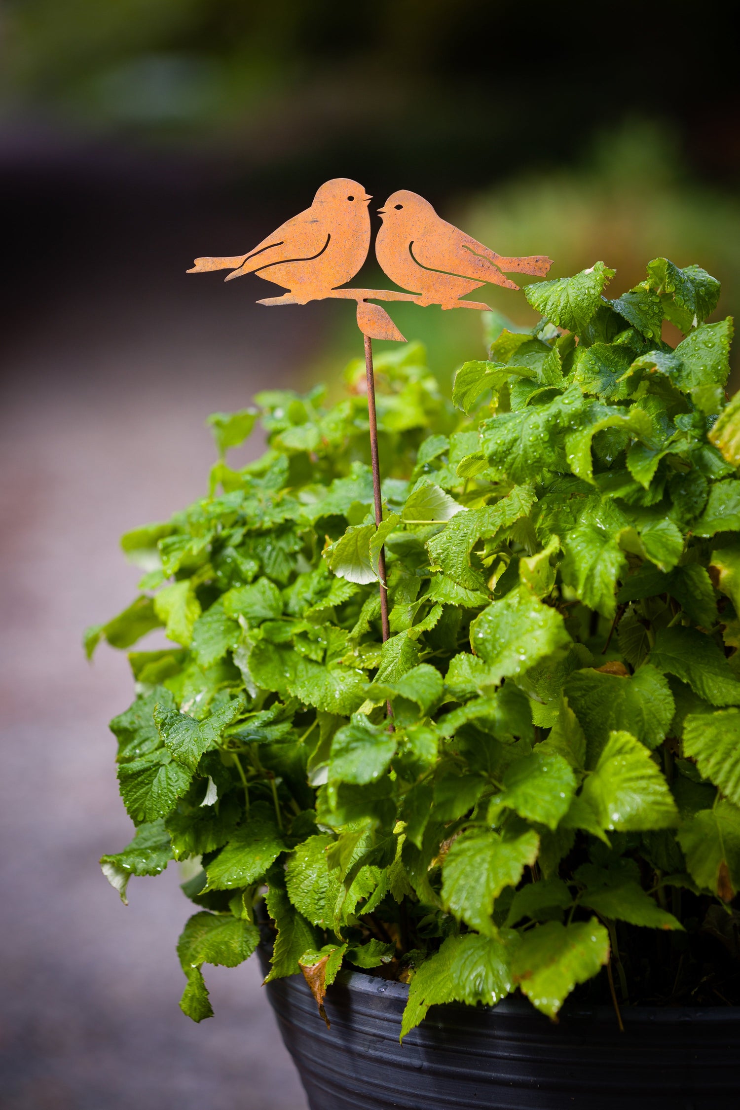 The Lovebirds Pick is made of recycled steel and pre-treated to create our signature rusted texture and vintage look. It would be a charming accent for your favorite potted plant!