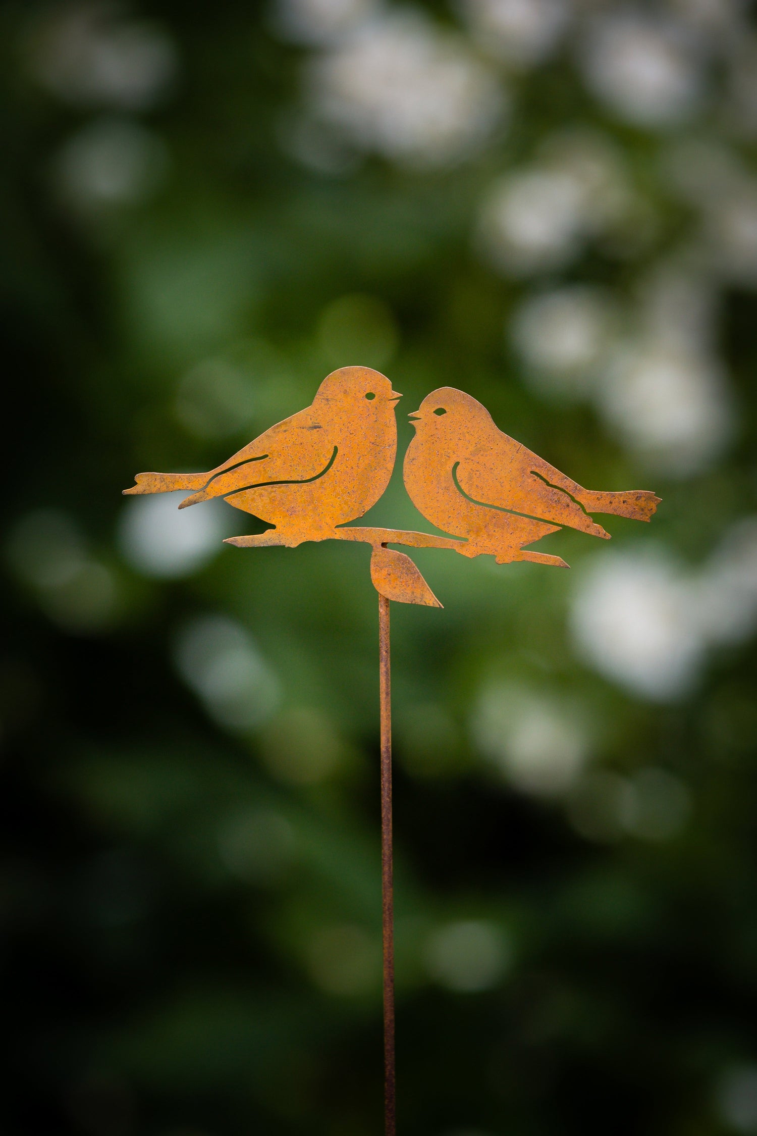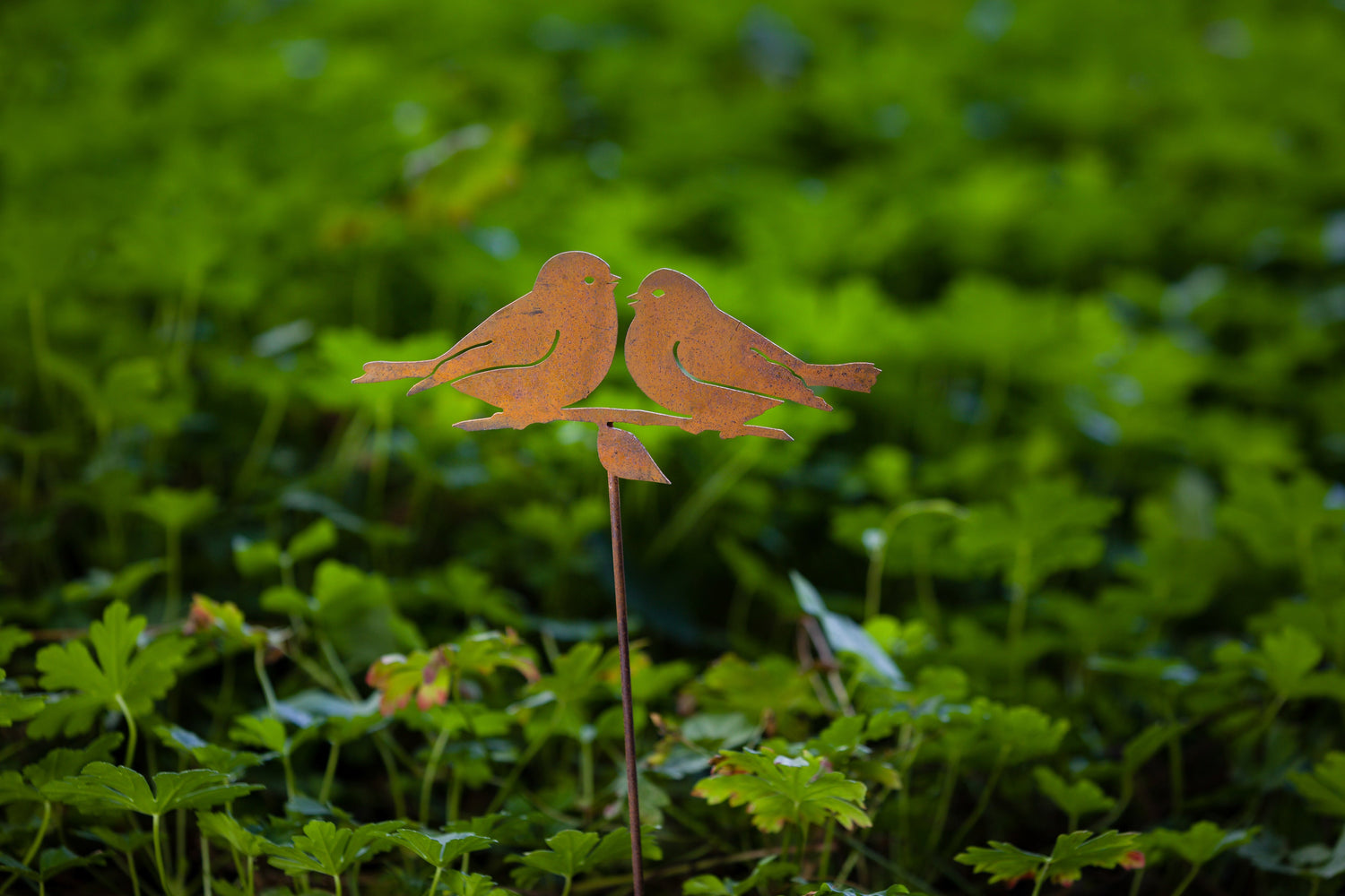 Many bird species, including songbirds, keep the same mates for life, so spotting a pair of birds perched together in real life just like in this design is not unlikely! Display our delightful Lovebirds Pick in your garden as a nature-inspired symbol of love.