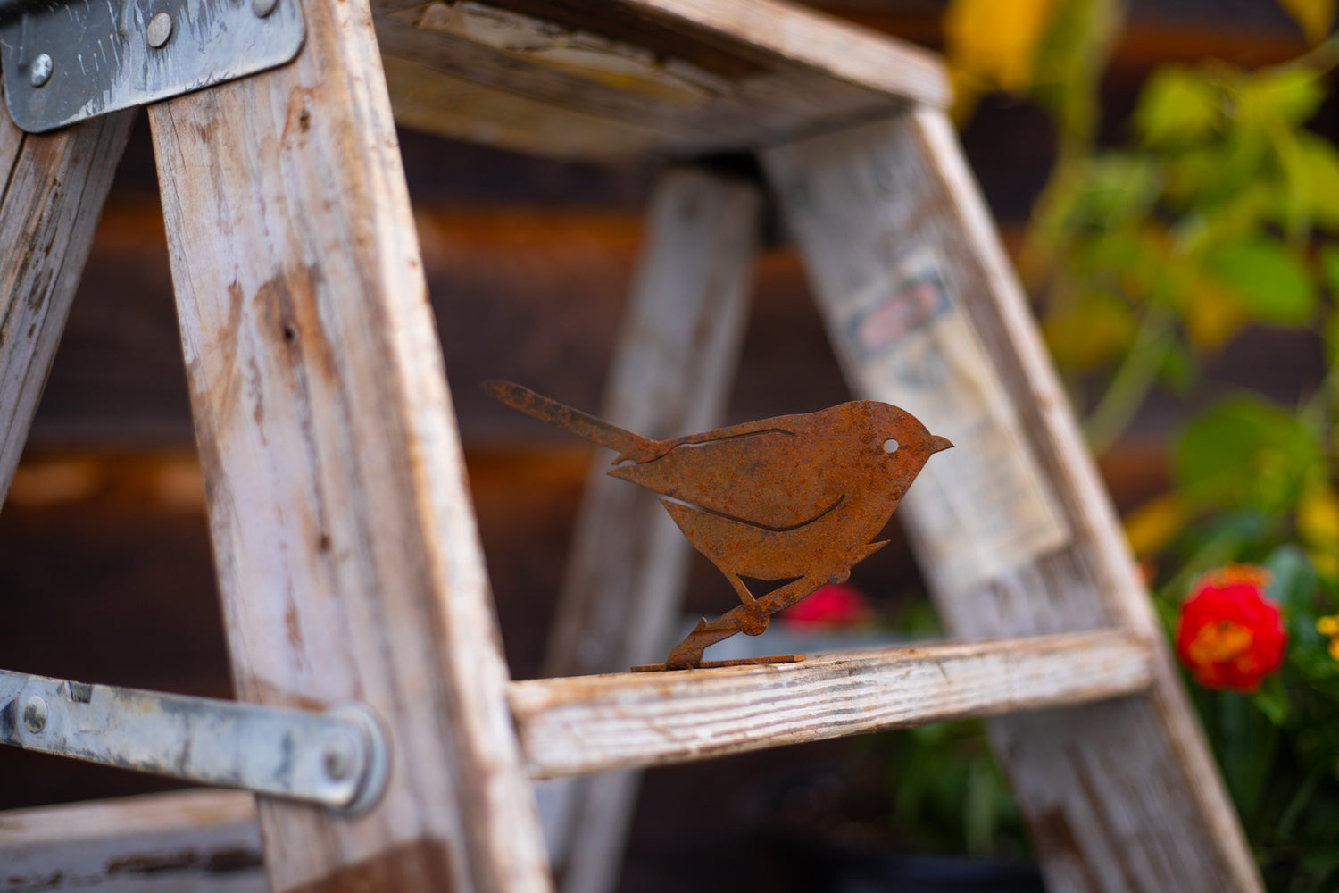 The Bushtit is made of recycled steel and pre-treated to create our signature rusted texture and natural look. Add it to a collection of rusty birds along a railing, ledge, or even a stump in your backyard!