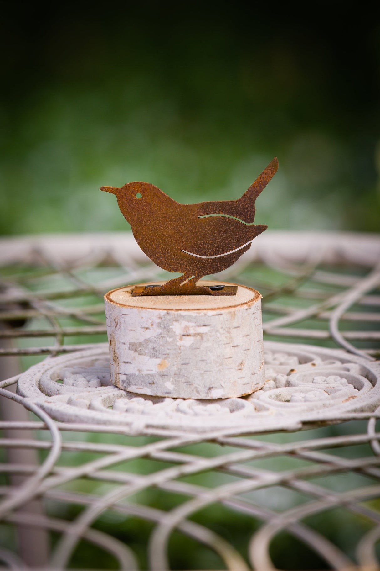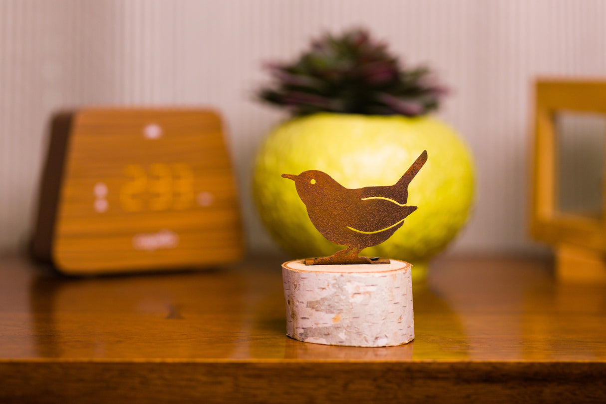 Designed for indoors or out, this cheerful little wren will compliment your home and garden anywhere it’s placed! Bring life to any windowsill, flower pot, fence line or trellis. An elegant addition to any yard or garden! Cut from 16-gauge recycled steel with holes pre-dilled for easy mounting, this little bird has been pre-treated to give it an authentic rusted surface. Naturally occurring oxidation gives this piece of garden art a rustic and charming life about it, complementing the luscious greenery around it.
