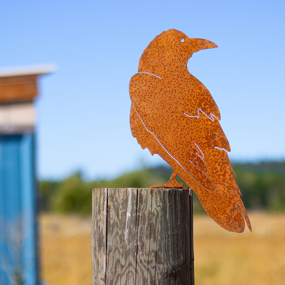 Despite their ominous reputation, Ravens are very intelligent and resilient creatures, eating a wide variety of food to survive and displaying impressive problem-solving skills. Display our Raven metal garden art as a symbol and reminder to be resilient despite any circumstance.
