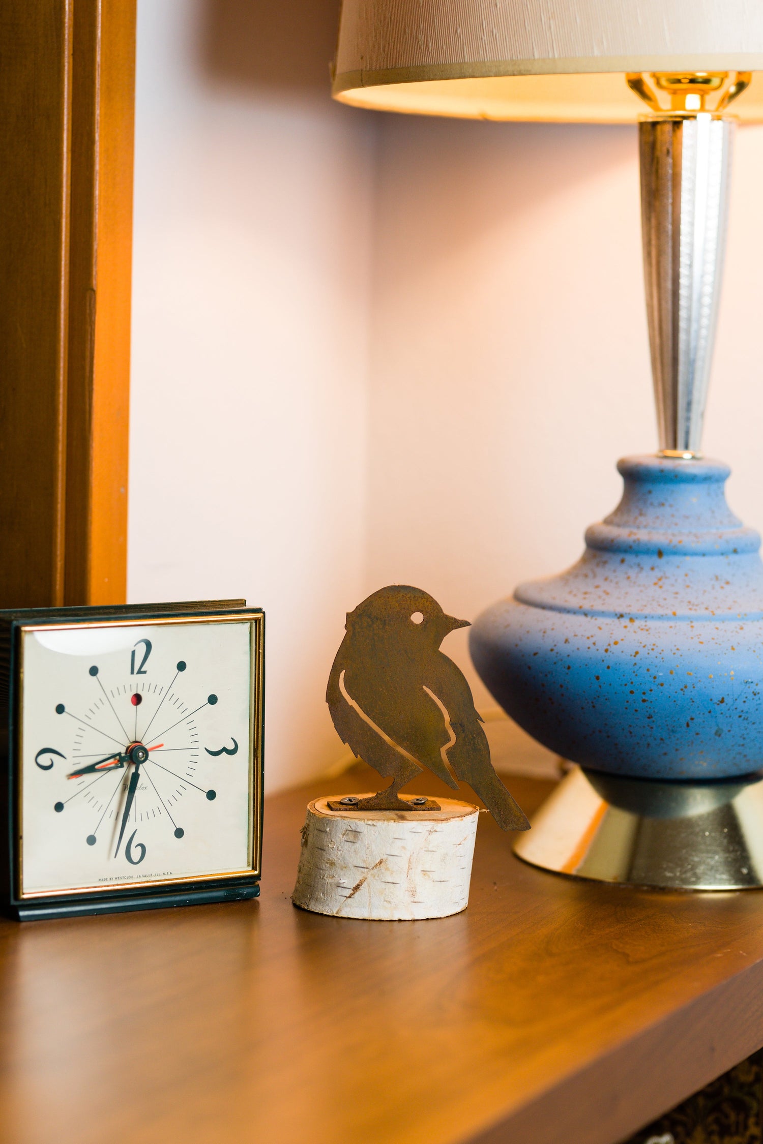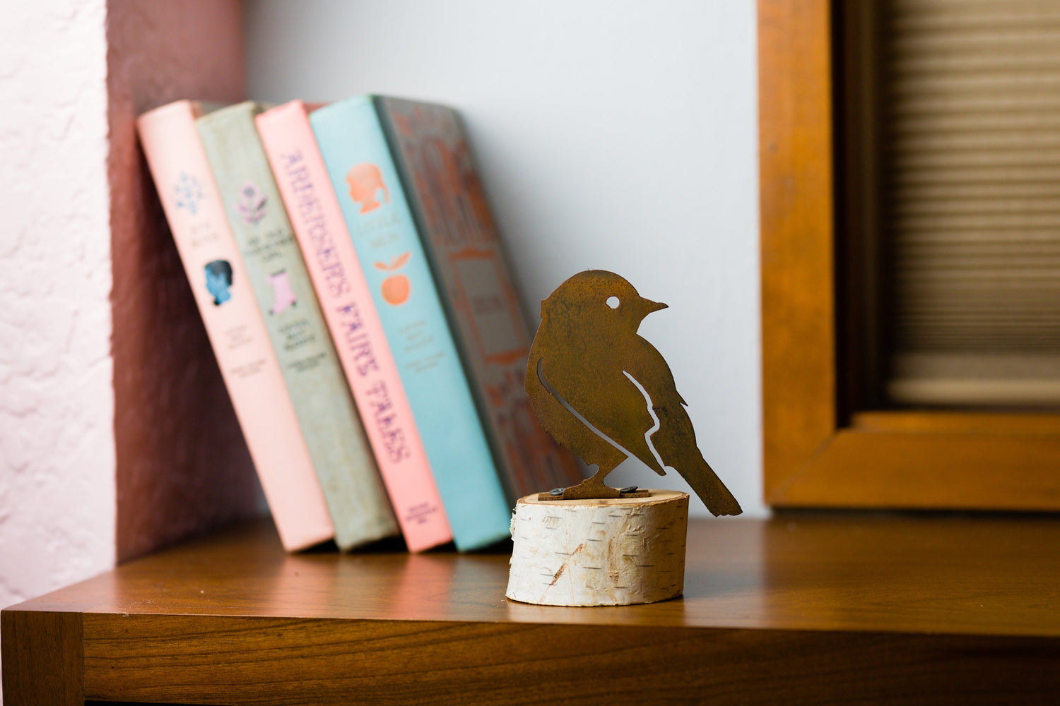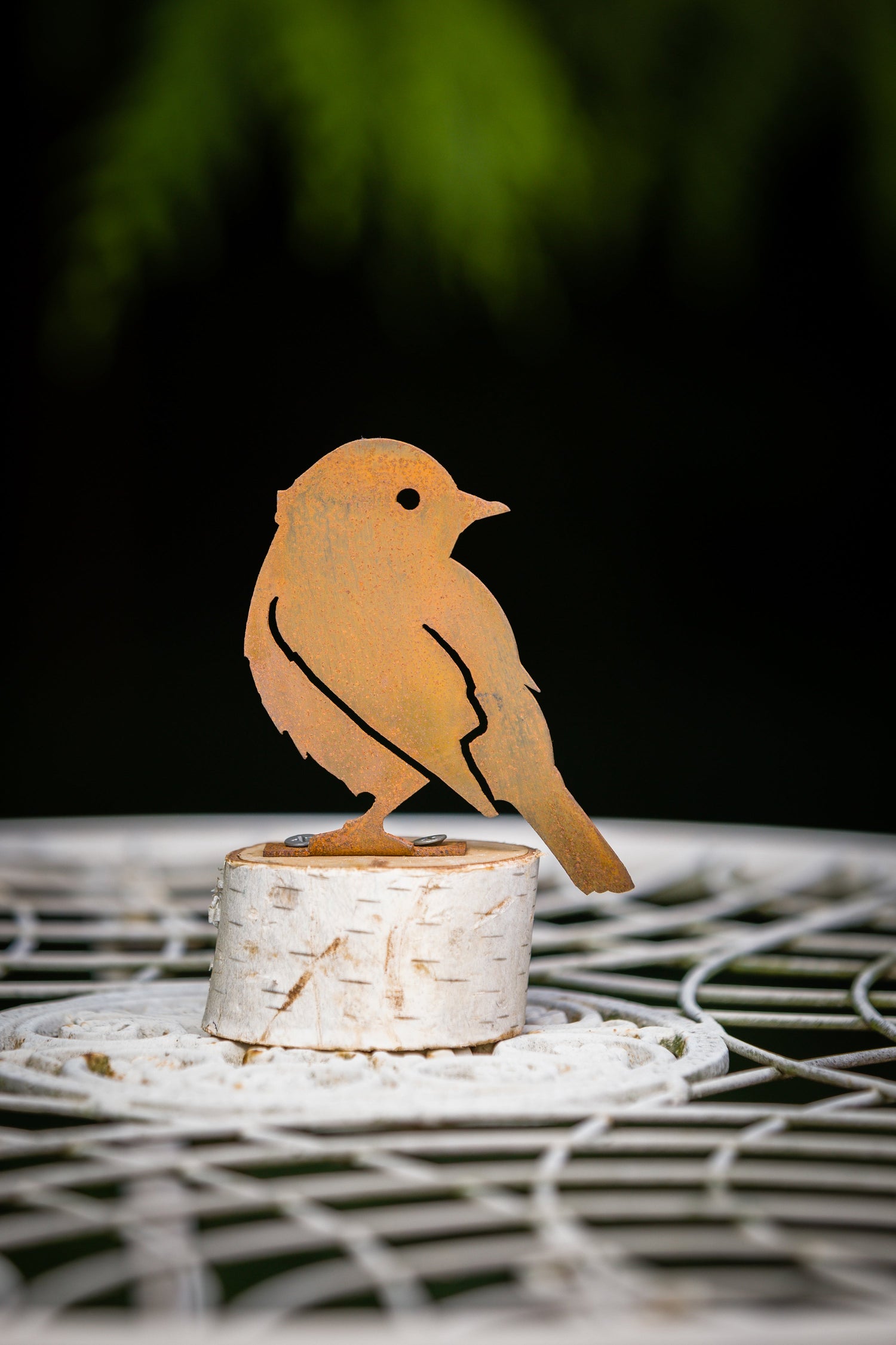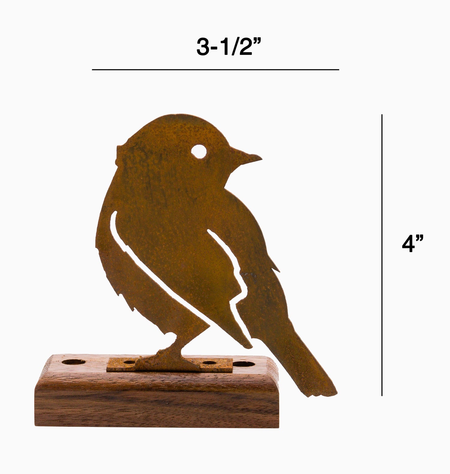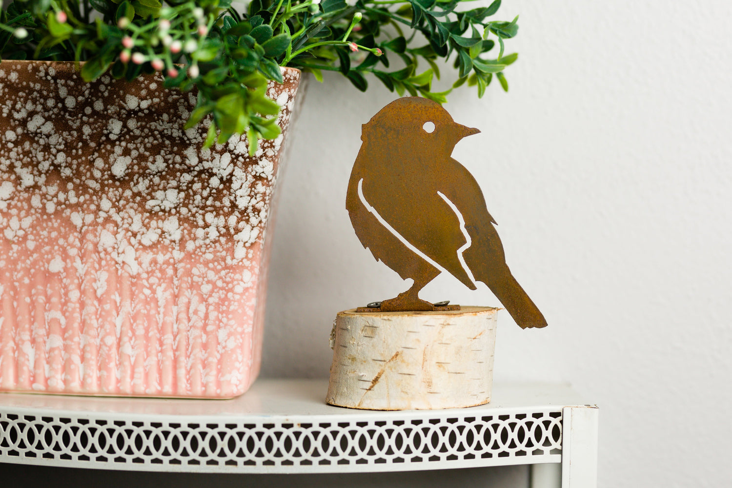 The Yellow Warbler is made of recycled steel and pre-treated to create our signature rusted texture and natural look. The charming rusty bird would be an adorable accent among a collection of rusty birds. It would be adorable perched on a railing beneath a bird feeder, or even attached to any ledge in your home.