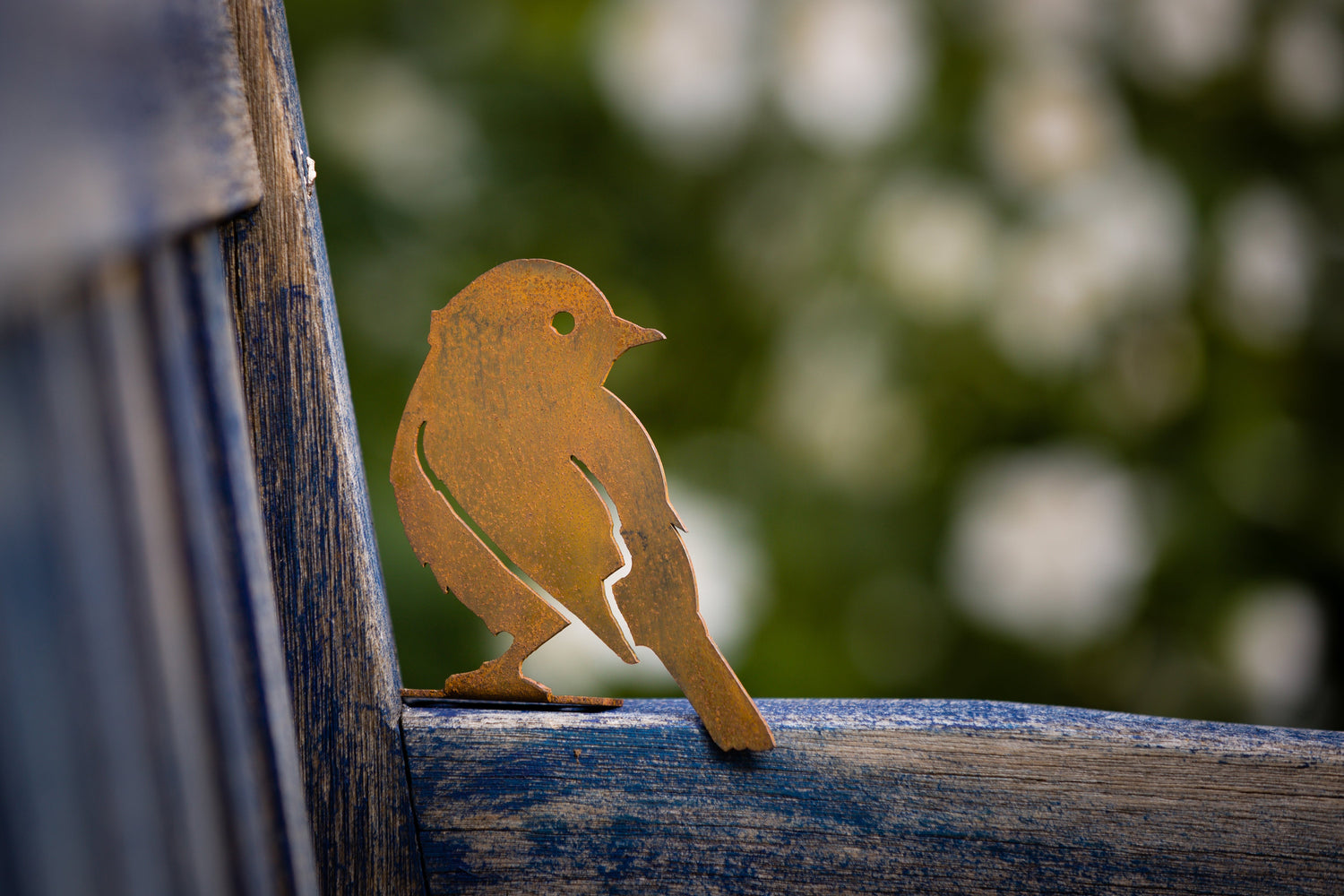 Our metal garden art is easy to mount with a 90° angled tab and pre-drilled screw holes added to each piece. Mount your product to a window, tree branch, pergola, fence, trellis, garden gate, or an old log in the backyard. The possibilities are endless! Many of our designs are also available in a stake version that can easily be inserted into soft ground.