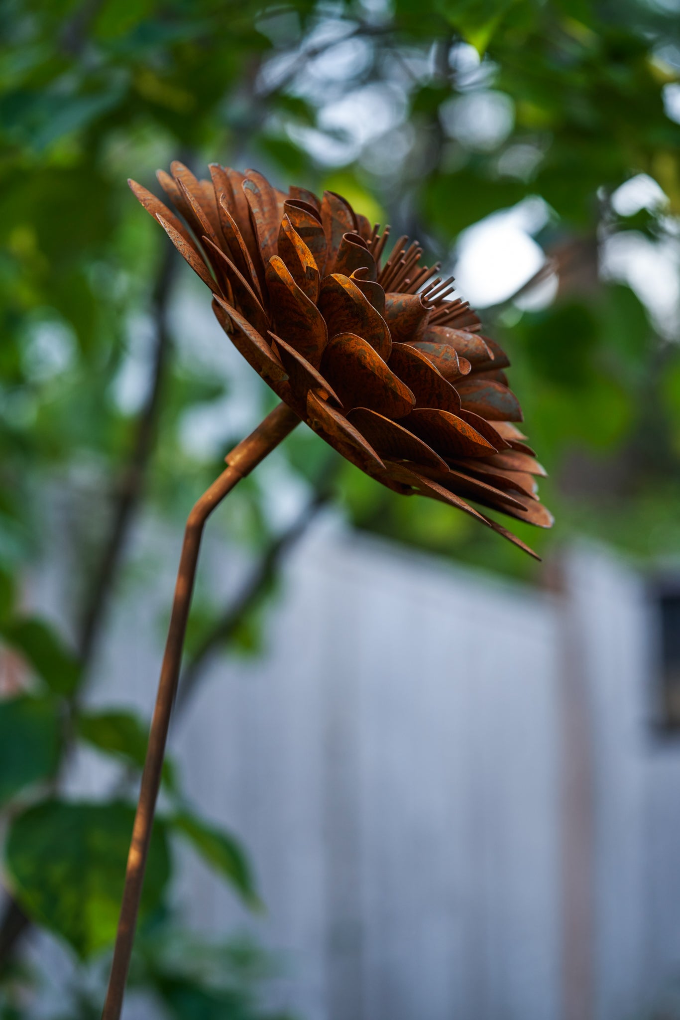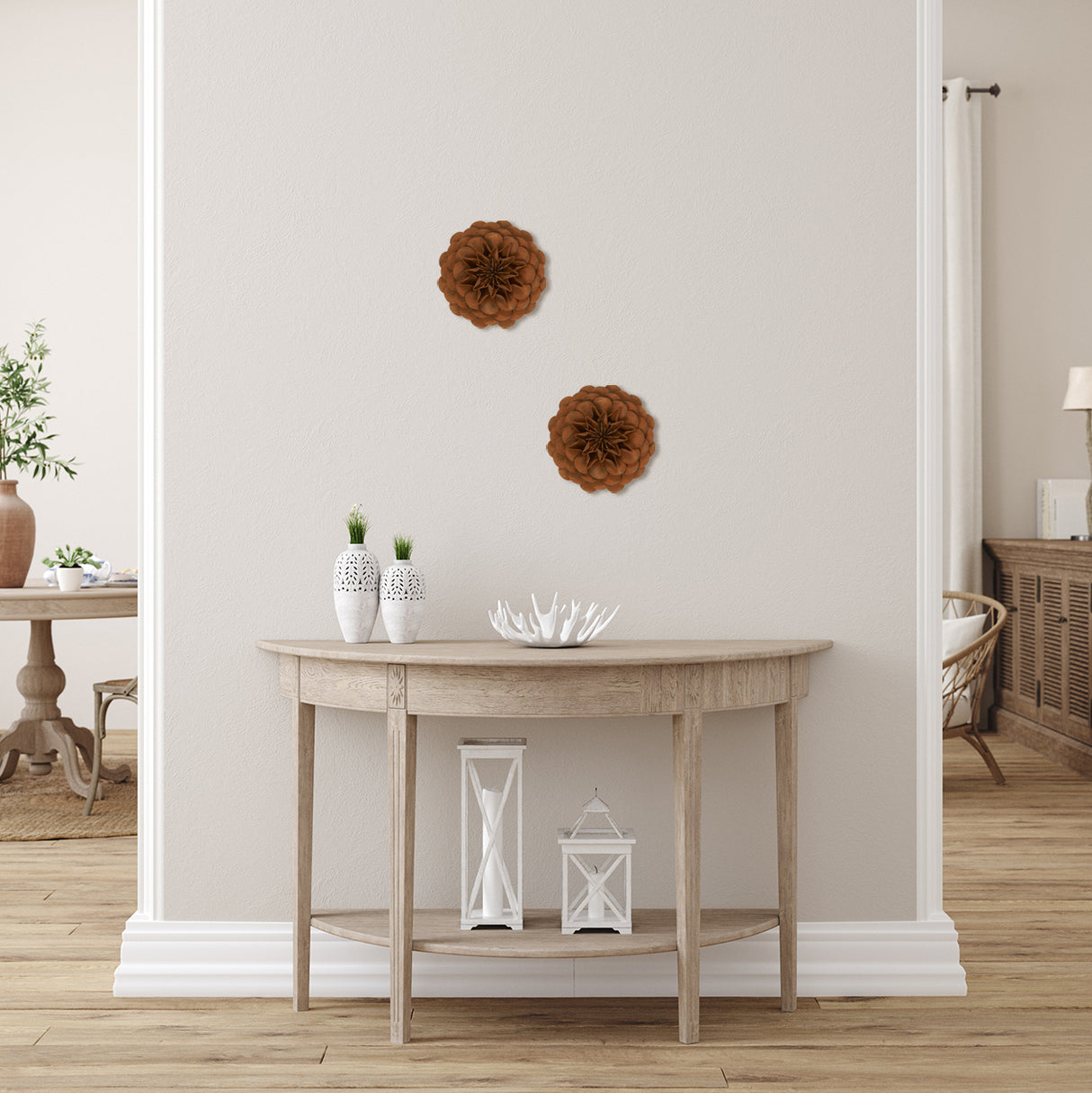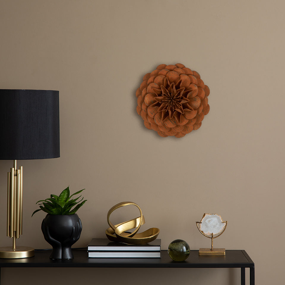 Delightfully enigmatic, Aumble blurs the lines between floral inspiration and abstract art. Crafted from steel and adorned with a one-of-a-kind rusty patina, this wall-mounted sculpture speaks to those who appreciate subtle beauty. The patina process ensures that no two pieces are alike, making Aumble a true original. Its shape hints at the structure of a flower, but the abstract design leaves room for interpretation, encouraging a deeper connection with the piece. Aumble brings a touch of nature’s elegance into any space, but with an artistic twist that makes it stand out.