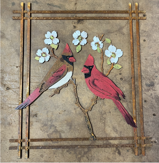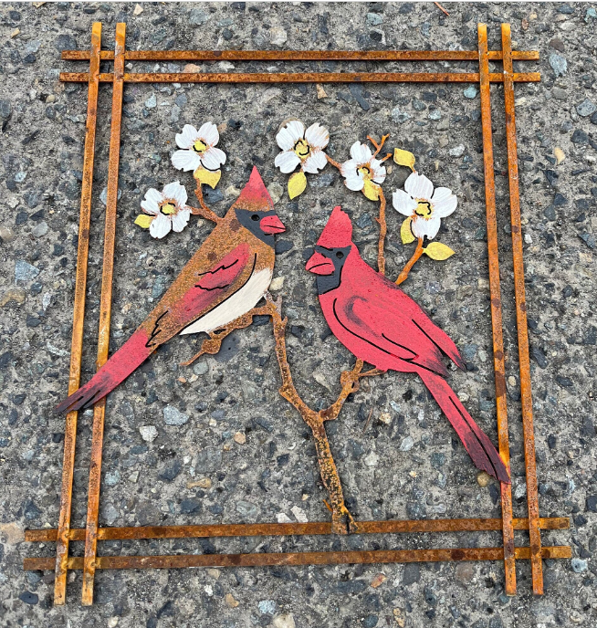 Create a peaceful and inviting outdoor space with our beautiful Cardinals on Dogwood Wall Art. This garden art piece features stunning cardinals and a dogwood frame, adding a touch of nature to any outdoor setting.