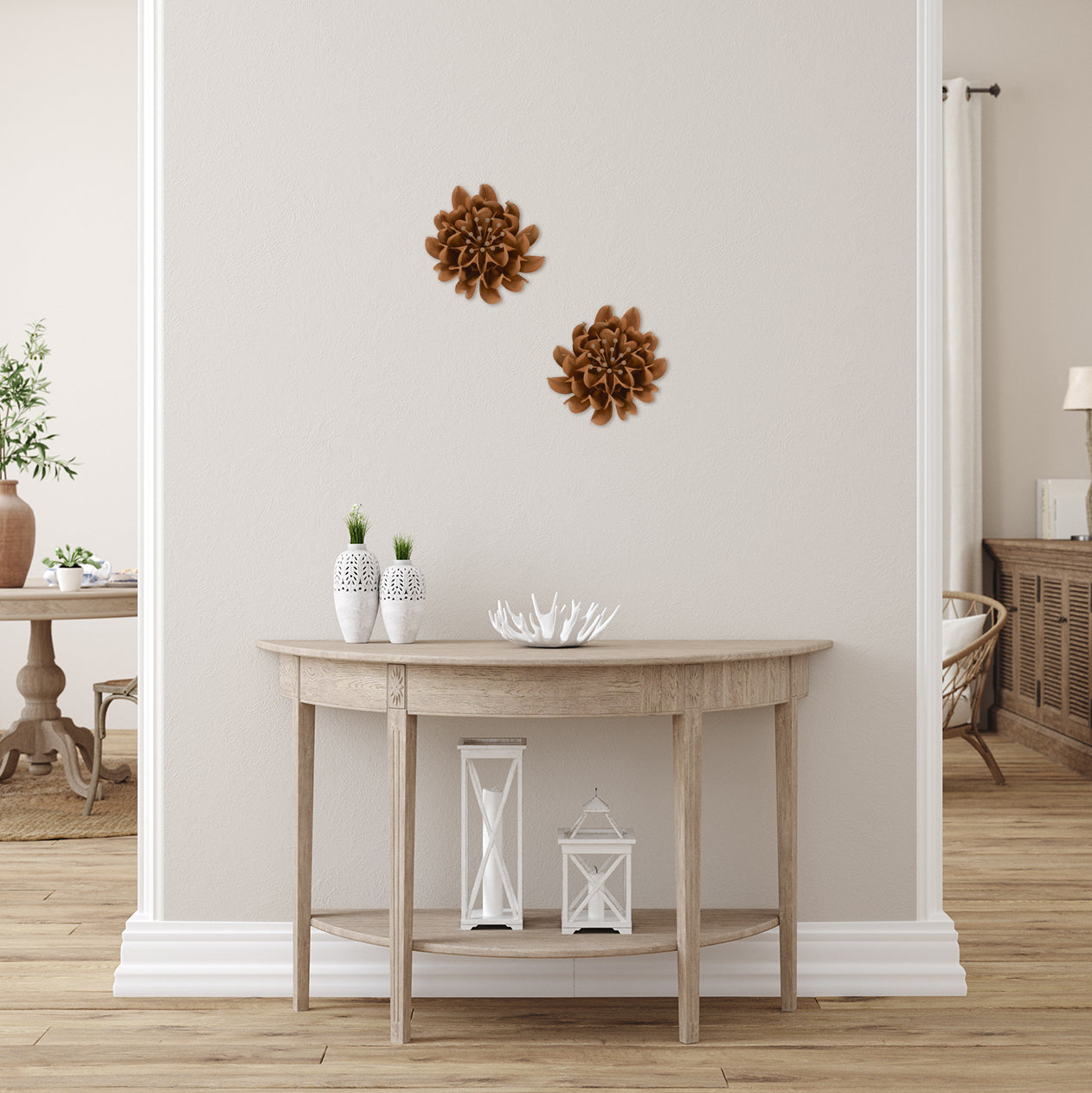Zenia is both a reflection of nature and a bold artistic statement. This steel wall sculpture is designed to evoke the feeling of a flower in bloom, without adhering to any traditional floral shape. Its flowing lines and unique rusty patina bring warmth and texture to any room, making it an eye-catching centerpiece. Zenia adds a sense of balance and harmony to your space, with its gentle curves and subtle yet striking design. The patina deepens with time, giving Zenia a living quality that makes it feel like a part of your home’s story.