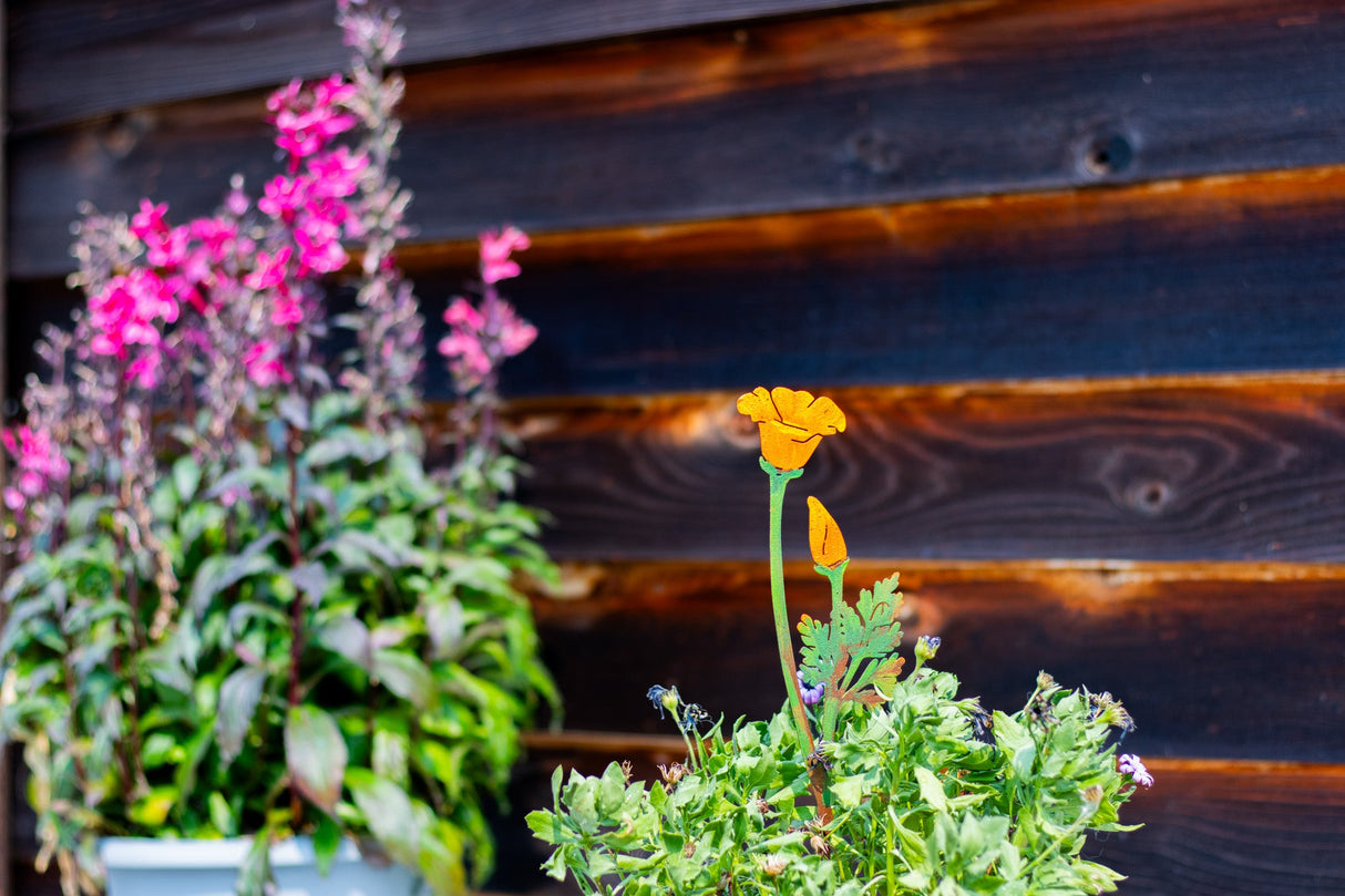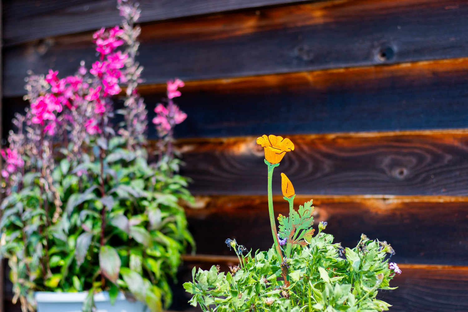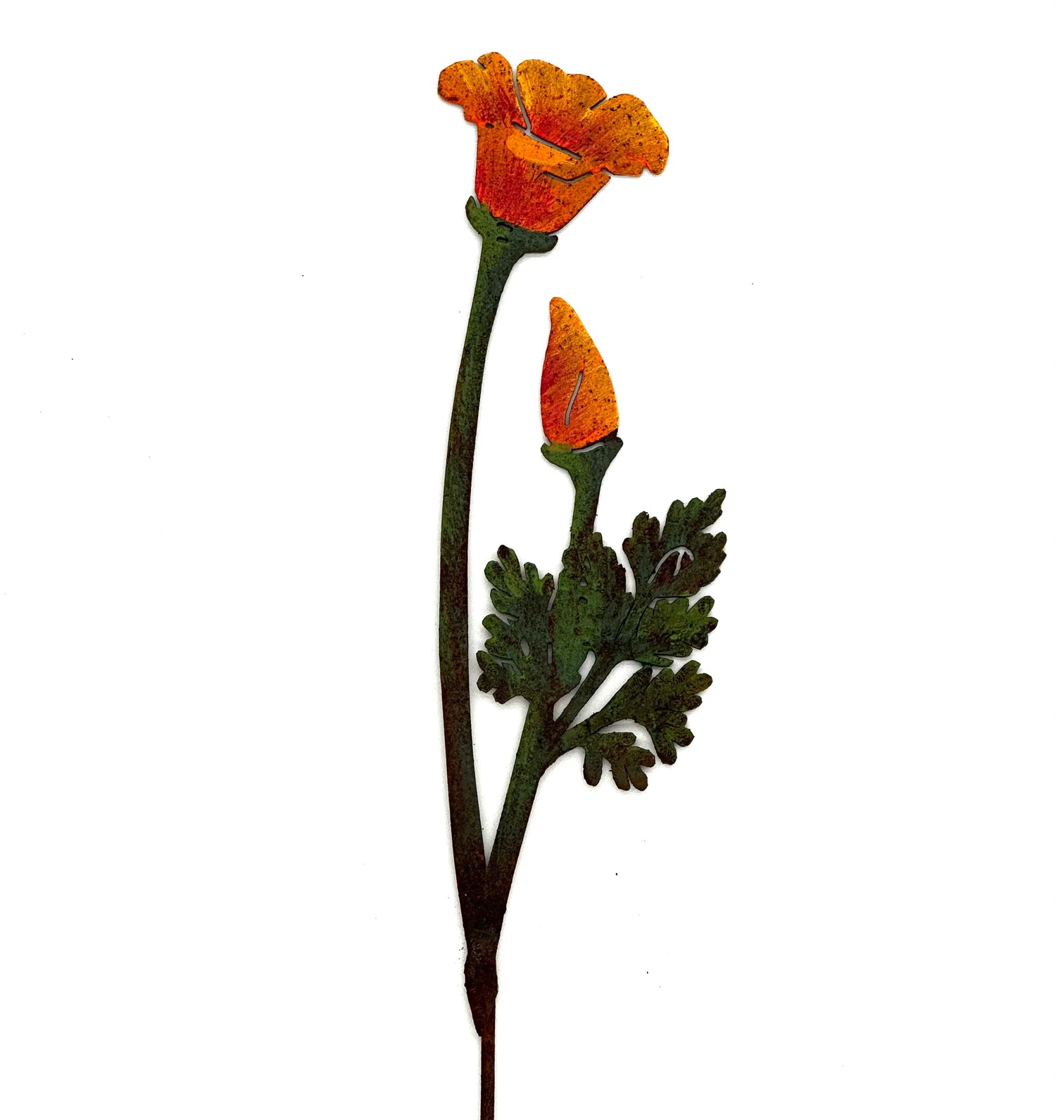 Transform your garden with our elegant California Poppy Flower Painted Garden Pick. Crafted with two sturdy stems and vibrant hand-painted blooms, this pick adds a touch of luxury and sophistication to any outdoor space. Bring the beauty of the poppy flower to your garden and make it a true work of art.