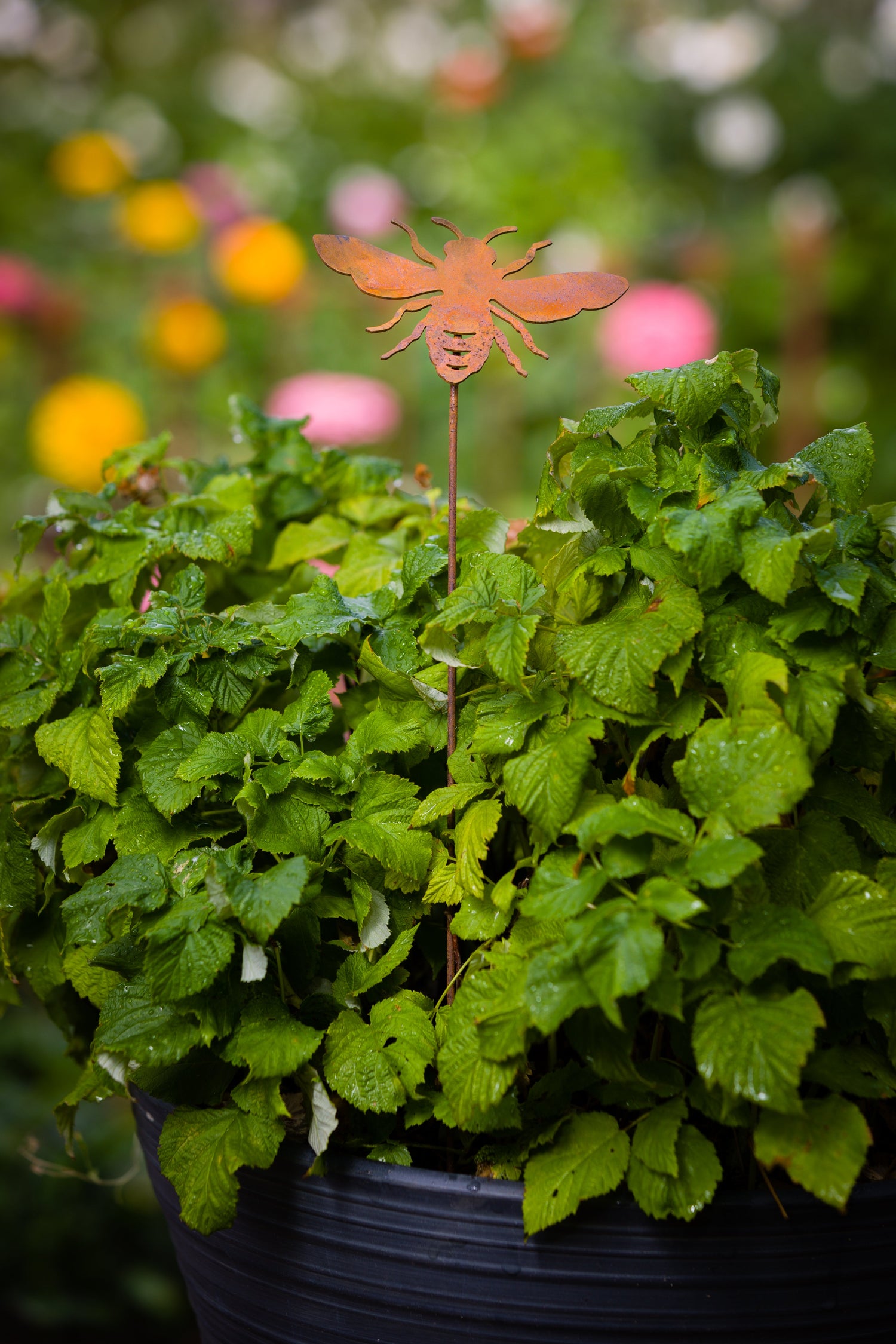 The Bee Pick is made of recycled steel and pre-treated to create our signature rusted texture and natural look. Display this iconic pollinator in the flower pot of your favorite plant!